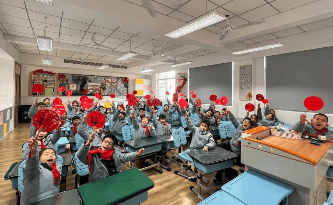 合作完成巨型创意福字,每个孩子负责一部分,最后拼成一个大大的福字,寓意“团结友爱,福满班级”。