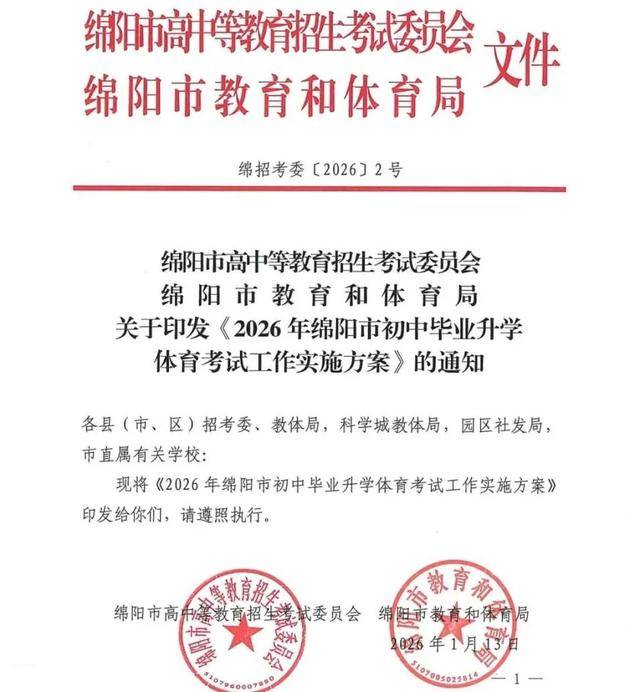 近日,有不少家长在社交媒体上讨论,称2026年绵阳体育中考又有新的调整。我们也从多位绵阳初中体育老师处获知了家长们口中所说的《2026年绵阳市初中毕业升学体育考试工作实施方案》,并向绵阳市教体局核实得知:该文件内容属实。