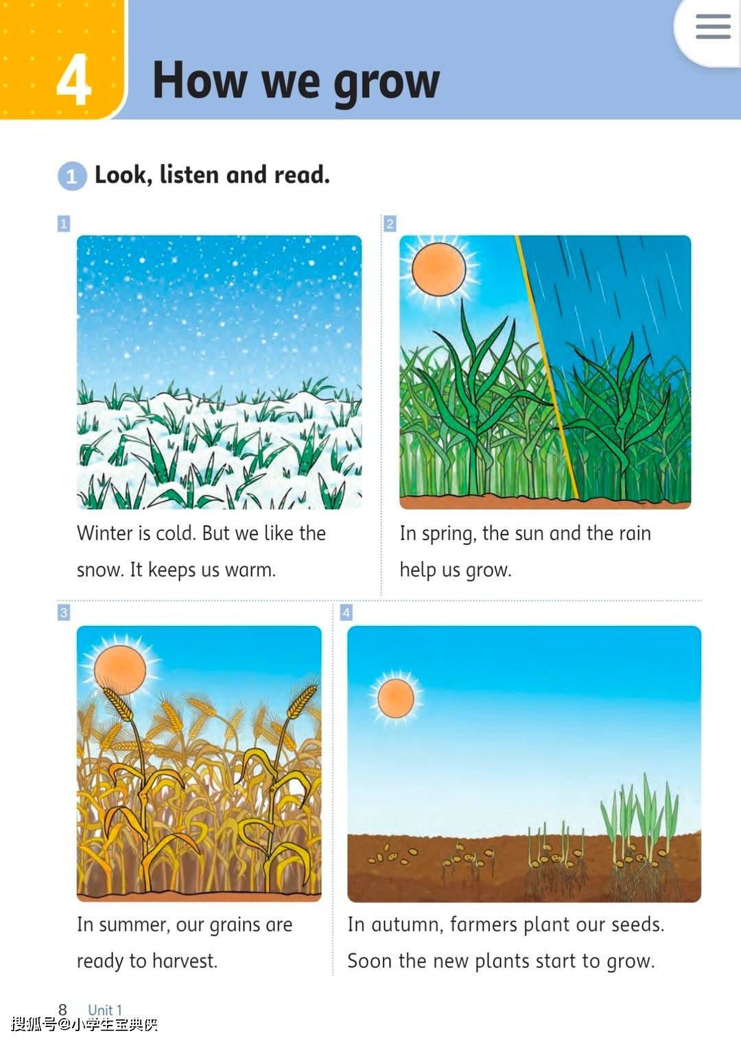 • 四季生长规律:“How we grow” 介绍农作物在四季中的生长变化,让学生理解自然与人类生活的关联,培养尊重自然的意识。