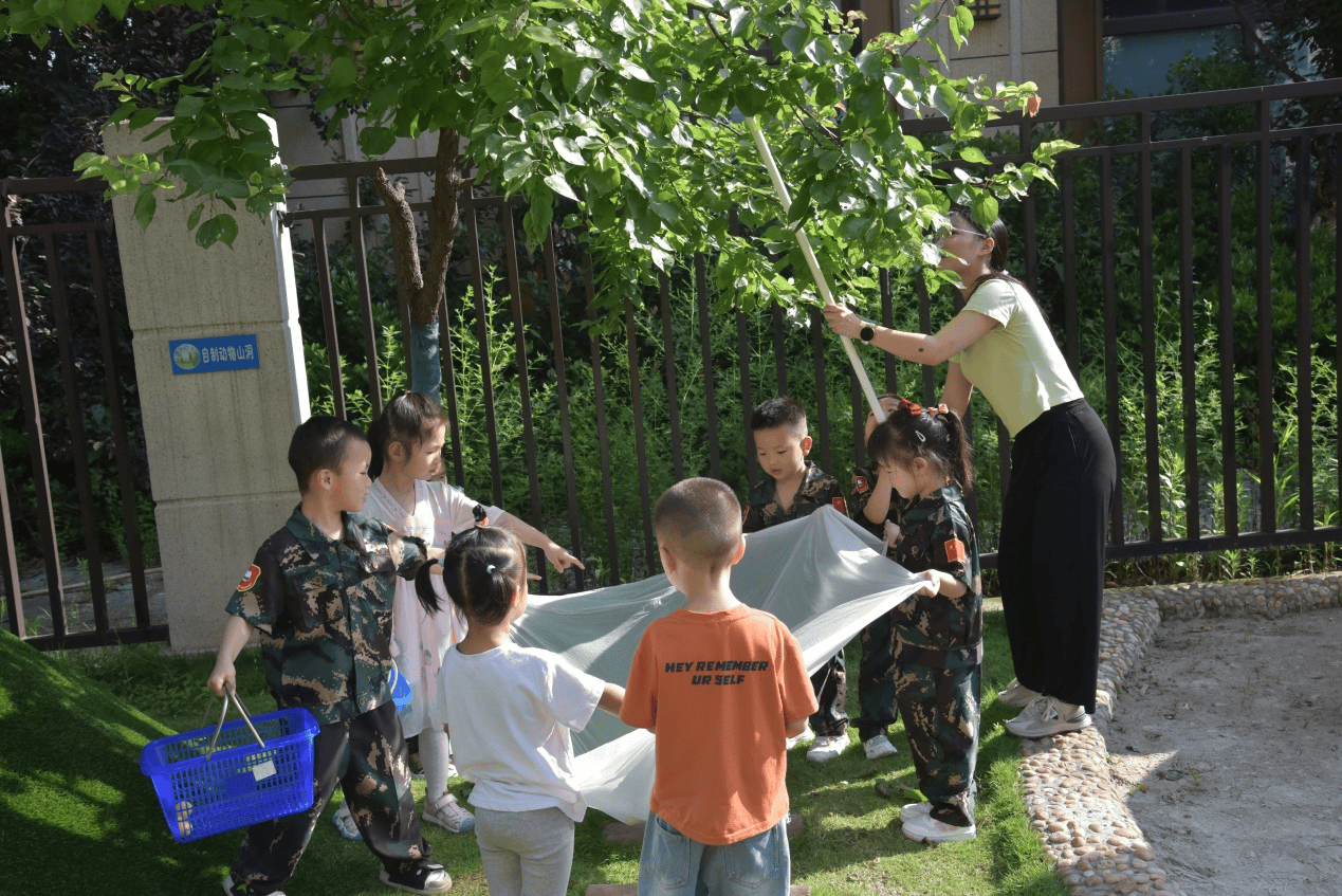 北街幼儿园的各类课程与活动中,“每月一节”爱眼主题活动常态化开展,“假如我看不见”体验日中蒙眼取物、蒙眼行走等游戏让幼儿深刻体会视力的宝贵,幼儿园桂圆树上悬挂的护眼儿歌让幼儿随时吟唱记忆。同时,园所要求每日户外活动不少于3小时,体适能循环、早操、沙水游戏、军警课等多样化活动促进孩子多巴胺分泌,既护视力又强体能。