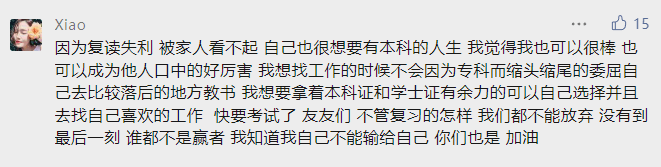 有弥补高考失利的,怕被被人看不起的,希望成为家人的骄傲的!