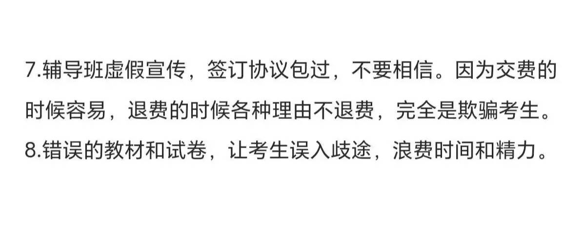 6.不要按照辅导班的教材和试卷复习。因为辅导班的老师都不是大学教授,老师都不是权威的,所以编写的教材和试卷也不是权威的,具有误导性。