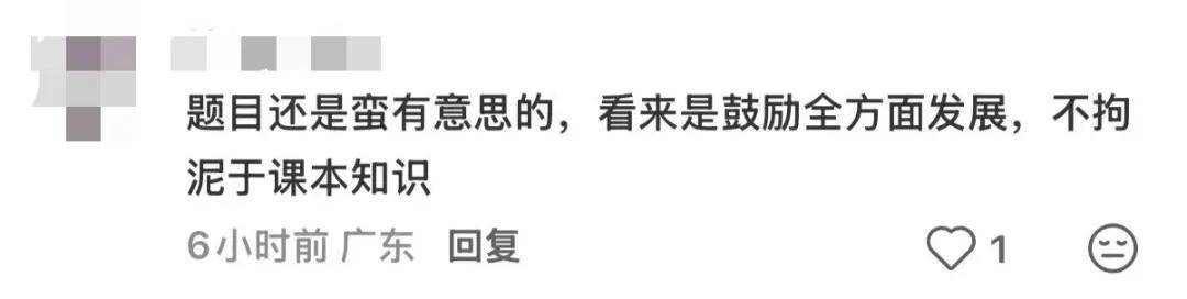 还有家长认为,这是学科融合和本地化落地的体现,预判未来的考试将更注重情境化、生活化、本土地域文化性。