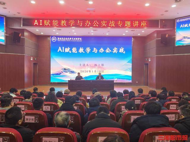 湖南日报1月30日讯(通讯员 廖鹏)人工智能时代,教师如何转型?教学与办公模式将如何变革?近日,湖南高速铁路职业技术学院举办《AI赋能教学与办公实战》专题讲座,邀请南宁师范大学杨上影教授担任主讲,全校领导干部及专兼职教师参加学习。