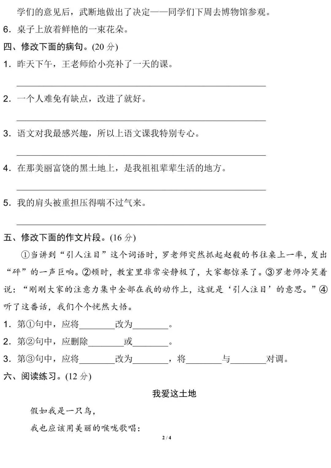 修改病句是小学语文科目不可忽视的重点内容,也是在小学阶段教学比较常见和重要的一项内容。小学生掌握了修改病句的方法后,就可以在造句、写文章时避免或少出错误,同时,也能及时发现并改正自己文章中出现的病句,这将对其今后的写作有很大帮助。