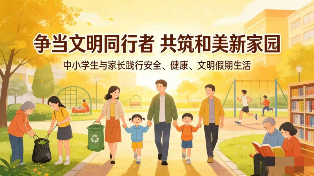 同学们、家长朋友们,让我们家校同心、携手同行,共同为孩子们营造安全温馨的假期环境,助力孩子们在这个假期里收获快乐、收获成长、收获美好,度过一个平安健康、充实有意义的假期!