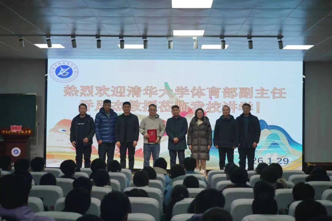 1月29日下午,清华大学体育部副主任、长聘教授乔凤杰莅临我校,为我校师生带来《体育运动对文化课学习的影响》专题报告。校领导班子成员、冠军实验班学生、体育教师、全体班主任及青年教师齐聚一堂,共探体教融合新路径。本次讲座由校党委委员、副校长赵大磊主持。