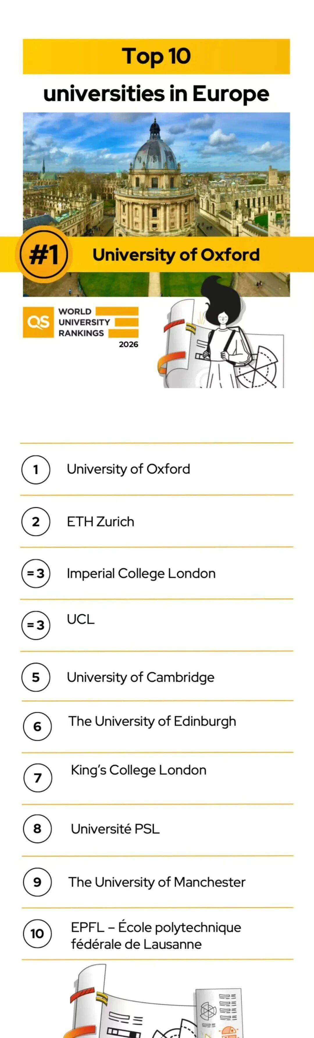 2026QS欧洲大学排名Top100榜单