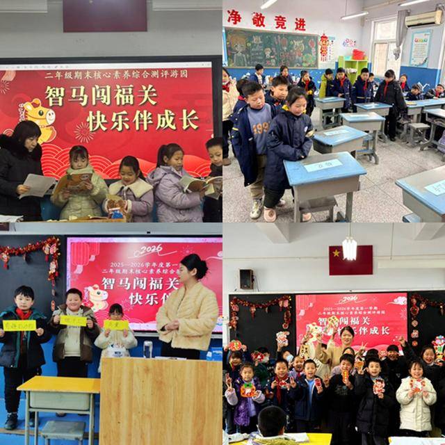 为深入推进“双减”政策落地,让评价回归育人本质,郑州市二七区苗圃小学低年级于本周开展了“骏马迎春,趣评展智”非纸笔测评活动。 本次测评紧扣低年级教学目标,将语文、数学等学科知识融入“马年闯关”主题情境,孩子们化身“小骏马”,在游戏化的挑战中动口、动手又动脑,既完成了知识的综合检验,又收获了满满的成就感与快乐。