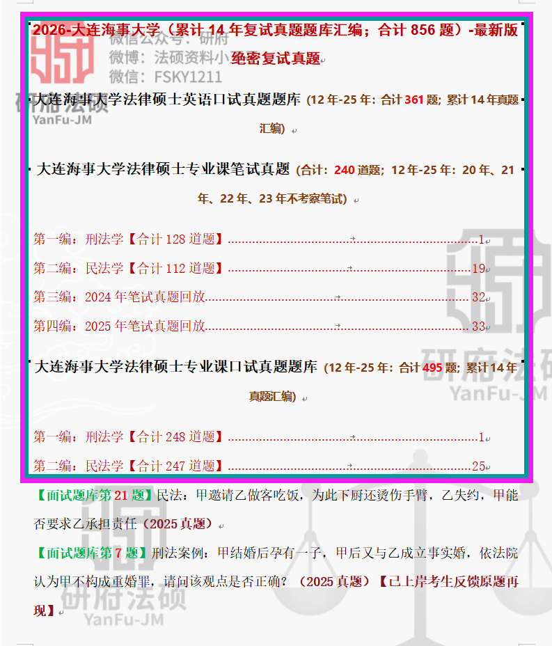 大连海事大学法律硕士专业课口试真题题库(12年-25年:合计495题;累计14年真题汇编)