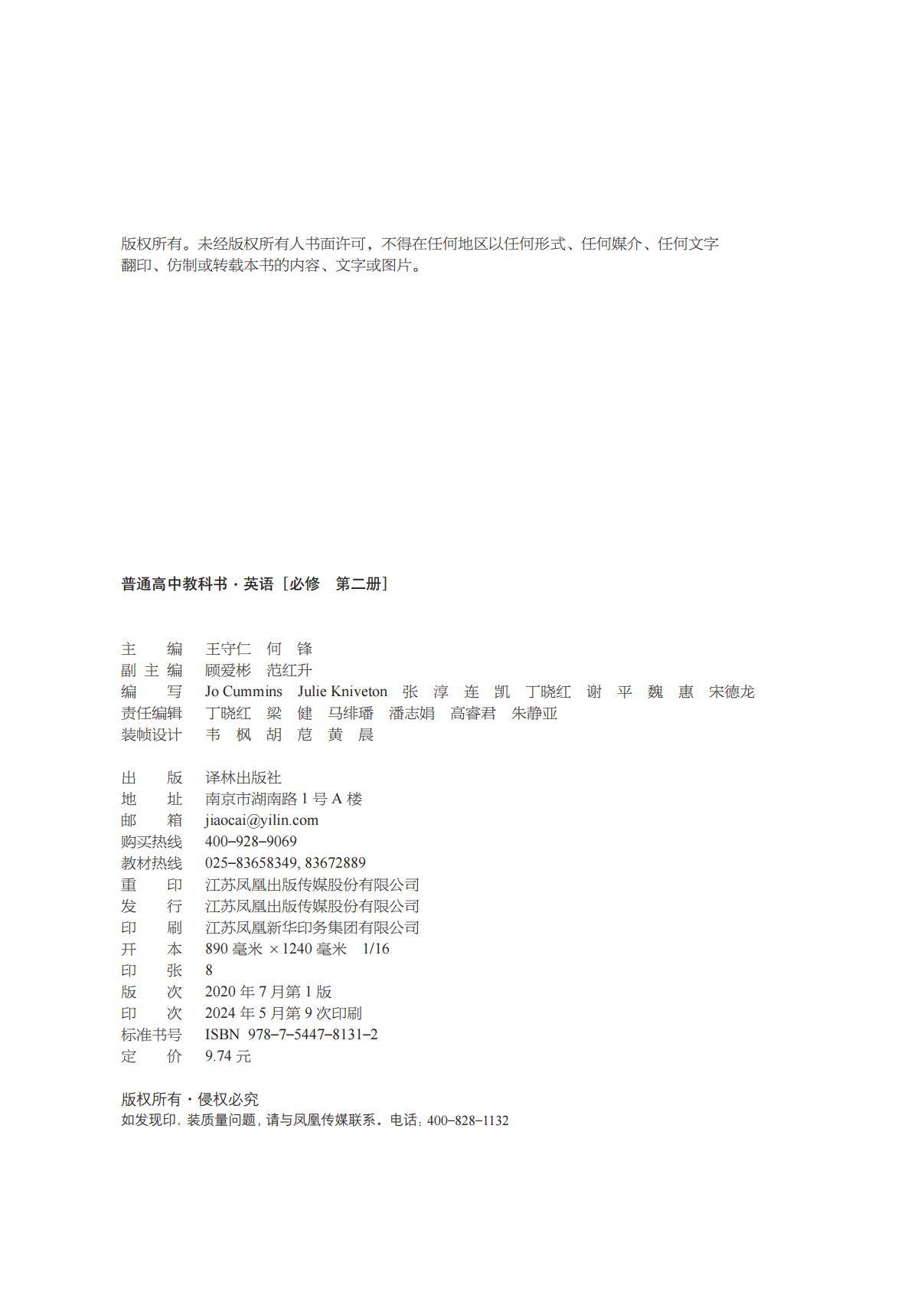 译林版高中英语必修二电子课本在线阅读