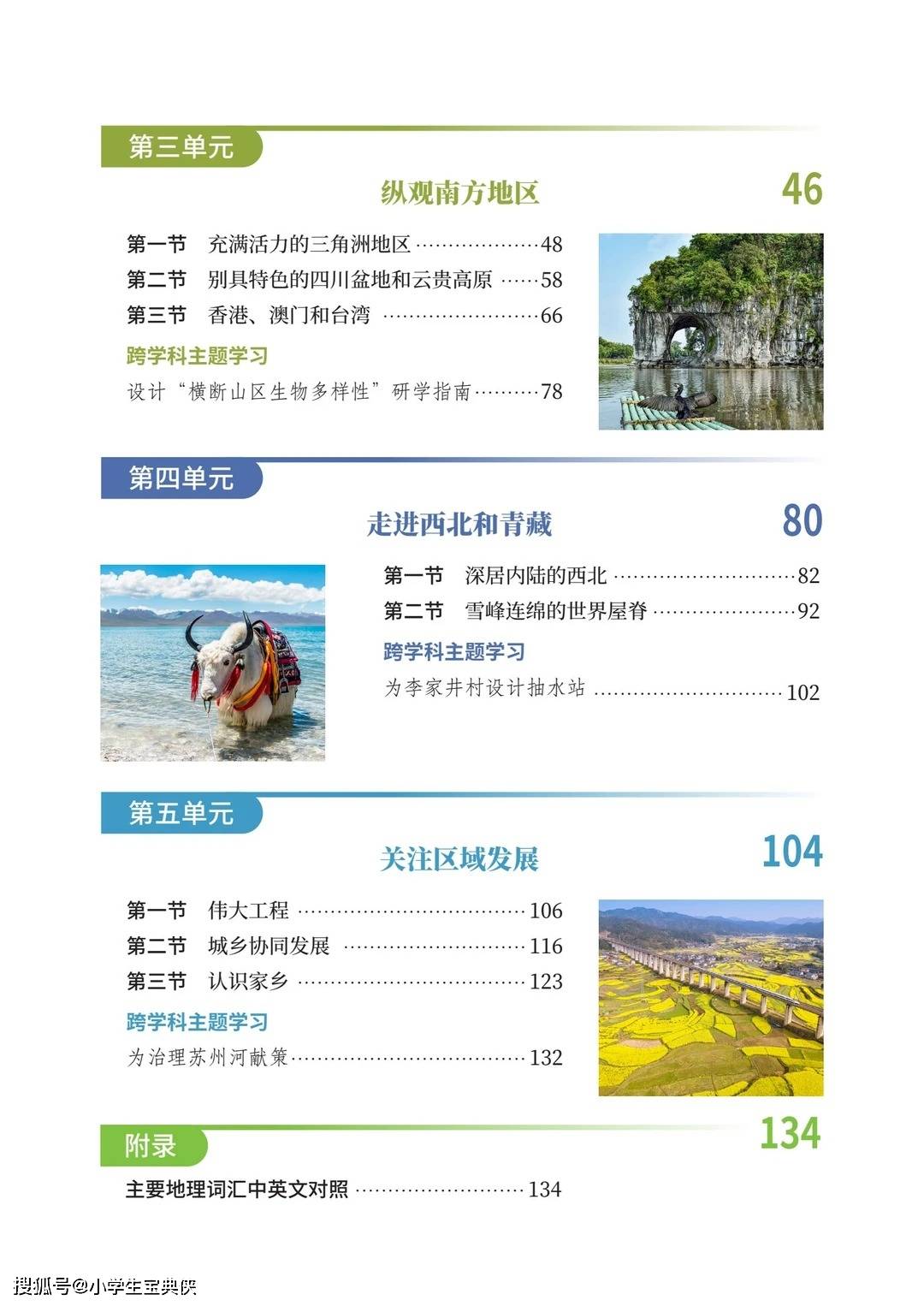 “纵观南方地区” 单元聚焦长江三角洲的活力、四川盆地的富饶,以及香港、澳门和台湾的独特魅力。“设计‘横断山区生物多样性’研学指南” 的任务,鼓励学生走出课堂,探索自然与人文的交融。