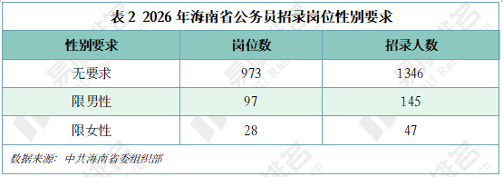 88.62%的岗位对性别无要求,其余对性别有要求的岗位中,97个岗位限男性报考,仅28个岗位限女性报考。