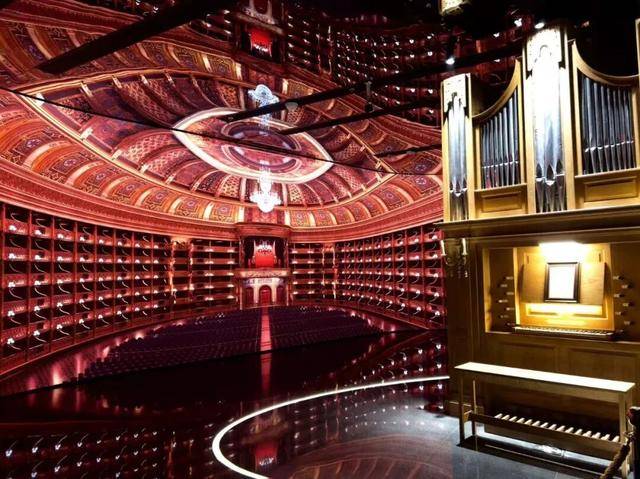 转入旁边展厅,整个空间变暗,眼前是一座歌剧院内部,红色的座椅,闪耀的水晶吊灯,旁边是一架古老的管风琴。