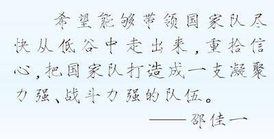 答:我非常理解球迷现在的心情。球迷对待国家队的态度,就像我们辅导自己的孩子写作业,写得不好时,会有种恨铁不成钢的心态。作为国家队主教练,这是一种动力,督促我更好地完成自己的工作。