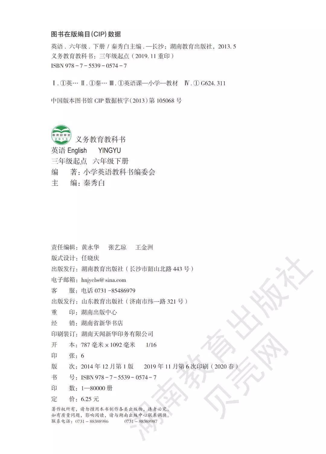 湘鲁版六年级英语下册电子课本图片版在线阅读
