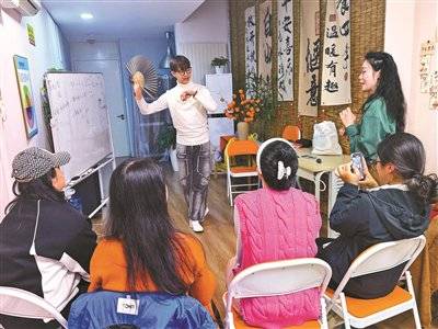 面对一群完全没有基础的成年人,巴特尔总是在想怎么让这些白天听流行音乐、看短视频的职场人,听懂梅派的幽兰雅韵。完成每周一晚上的课程,是他雷打不动的坚持。他说,尽管自己的演出任务繁重,学业压力大,但他依然能克服困难保证上课频率。