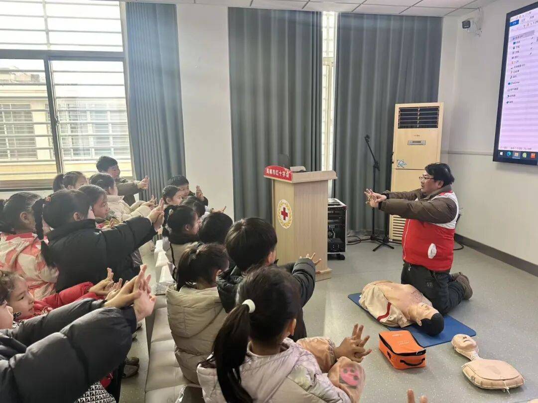 活动特邀市红十字会应急救护讲师现场授课,以专业通俗、生动有趣的方式,为老师、孩子们详细讲解溺水急救、心肺复苏(CPR)、海姆立克急救法等核心急救知识。