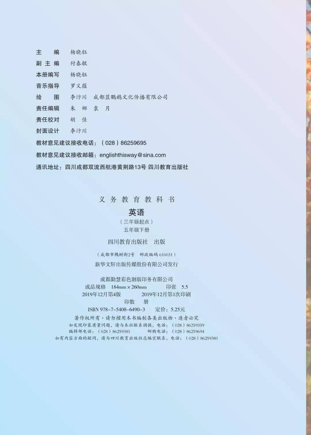 川教版五年级英语下册电子课本图片版在线阅读