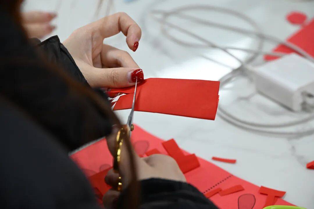 课堂上既有专注钻研的静谧,也有分享成果的欢声笑语。学员们在非遗老师带领下,描绘传统美学,传递新春期许,让千年剪纸技艺在青年群体中焕发新生机与活力。