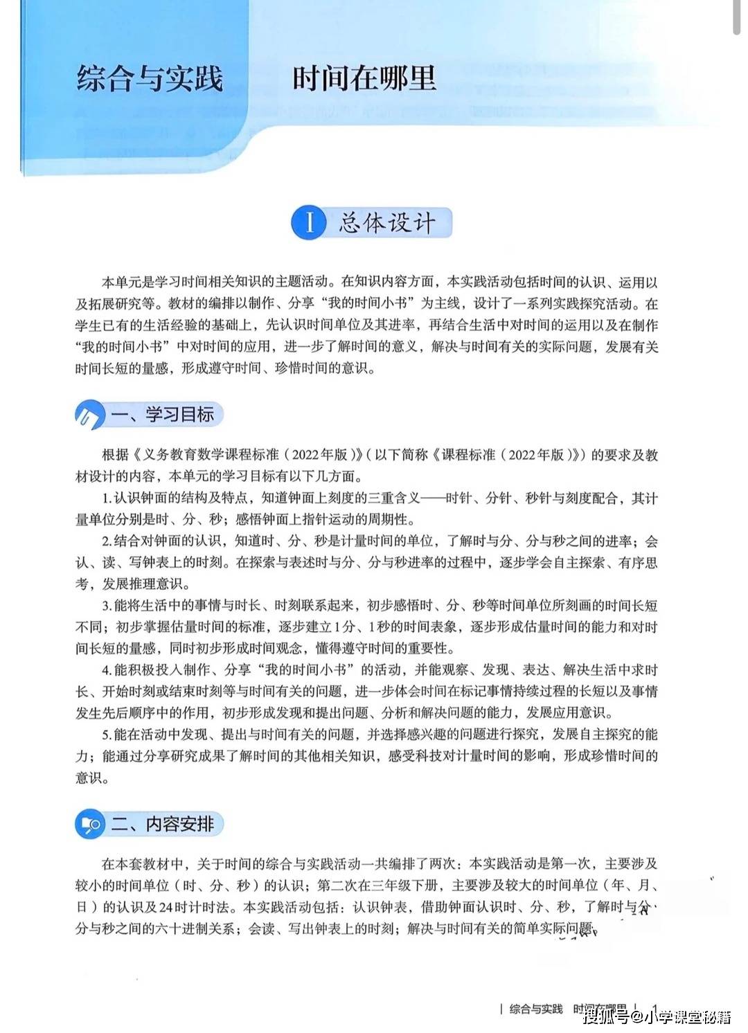 全书的设计充满了巧思,尤其在处理 “时间在哪里” 这类综合与实践活动时,展现了极高的教学智慧。它没有将时间概念孤立地灌输给孩子,而是以制作 “我的时间小书” 为主线,设计了 “认识时间”、“我与时间的故事” 等层层递进的活动。从认识钟面的结构,到感受 1 分钟、1 秒钟的长短,再到运用时间知识规划自己的一天,整个过程将抽象的 “时间” 与孩子的日常生活紧密相连,让他们在动手实践和亲身感悟中,自然而然地理解了时间的意义,建立了时间观念。这种 “做中学” 的理念,贯穿了整本教师用书。