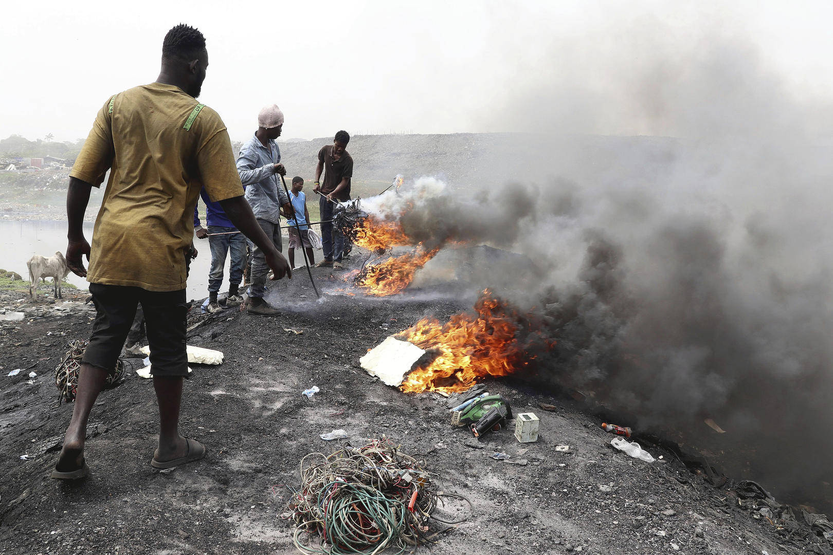 阿博布罗西的居民们在河岸上燃烧铜线提取铜 图据视觉中国