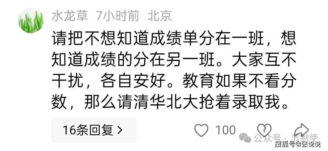 这个读者的评论,有一句话很有意思,教育如果不看分数,那么请清华北大抢着录取我。