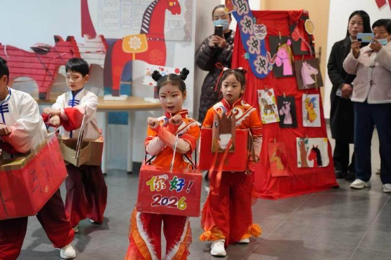 1月31日,一场以“马”为主题的跨学科项目式学习,在西咸新区第二小学生动展开。在学校举办的“想铛铛”创玩节活动中,同学们通过交响乐演奏、舞蹈、科学实验、趣味篮球、书画展示、创意头饰制作、骑乘亲手折制的“马儿”等多种形式,向受邀入校的家长集中呈现了近一个月来的学习成果。