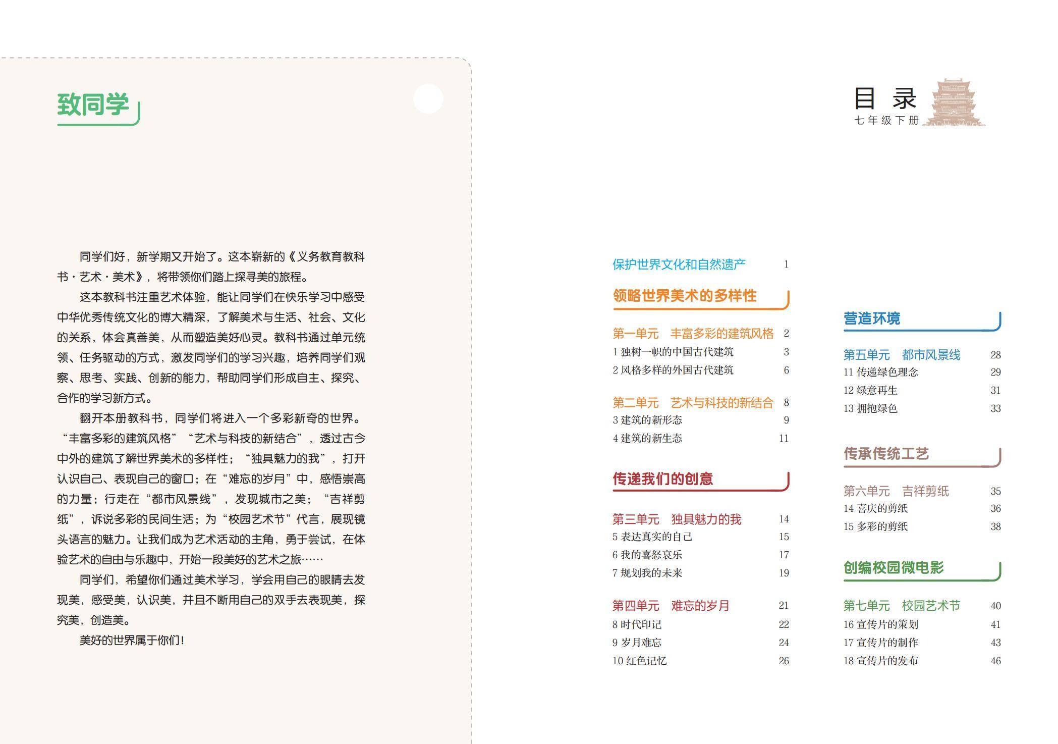 新学期新变化,初一下册美术教材将更注重知识融合与实际应用!为帮助初中阶段师生家长预览复习,我们特将2026赣美版七年级美术下册电子课本(高清版)整理出来,希望可以为大家做好新学期铺垫。