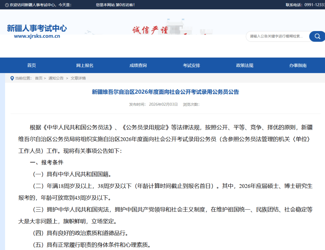 随着2026新疆区考公告发布,2026公务员联考省市均已全部启动,今年招考趋势究竟如何呢?正在备考的同学,需要注意什么呢?本文将为大家详细详细介绍>>