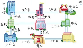 (2)冬冬从学校到邮局至少要走( )千米。