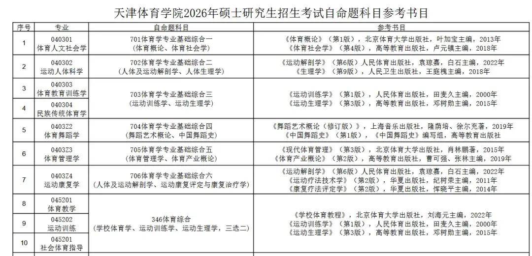 2026天津体育学院考研参考书目: 【三选二】