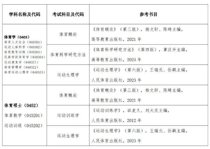 2025南京体育学院考研参考书目: