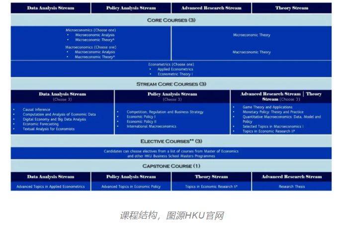 港大经济学项目分为四个stream,分别为data analysis、policy analysis、theory与 advanced research。