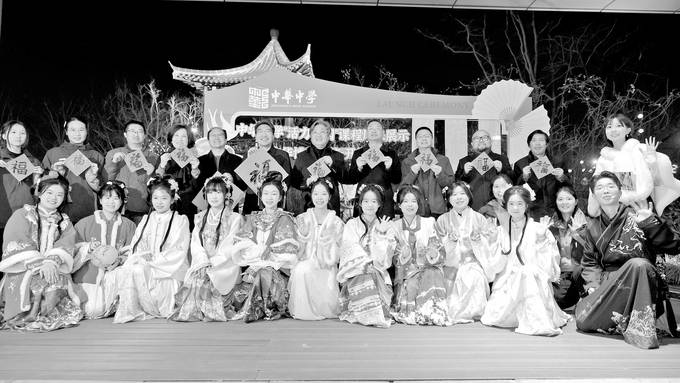 中华学子带来精彩绝伦的国风表演、诗词吟诵,书法家和师生共书“福”,机器人、机器狗酷炫登台,传统文化和现代科技交相辉映。