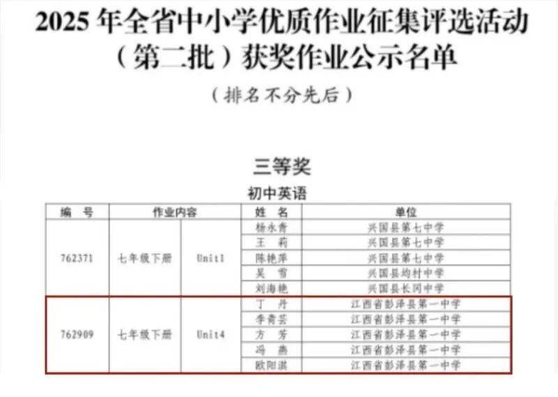 此次高中语文、生物及初中英语教研组的集体获奖,是学校长期以来鼓励教学创新、强化团队协作的成果结晶,也为各学科优化作业设计、提升育人实效提供了又一范例。学校将继续以此类活动为契机,激励全体教师深耕教学、追求卓越,进一步推动校本作业体系化、精品化建设,促进教与学方式的深刻变革。