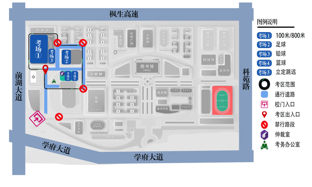 考试区域实行闭环管理,考生须步行进入考点,所有送考、陪考人员及车辆不得进入考点,考试入口处为考点西门(在南一环辅路上)。考生进入考点后,须按规定线路通道进入候考区。