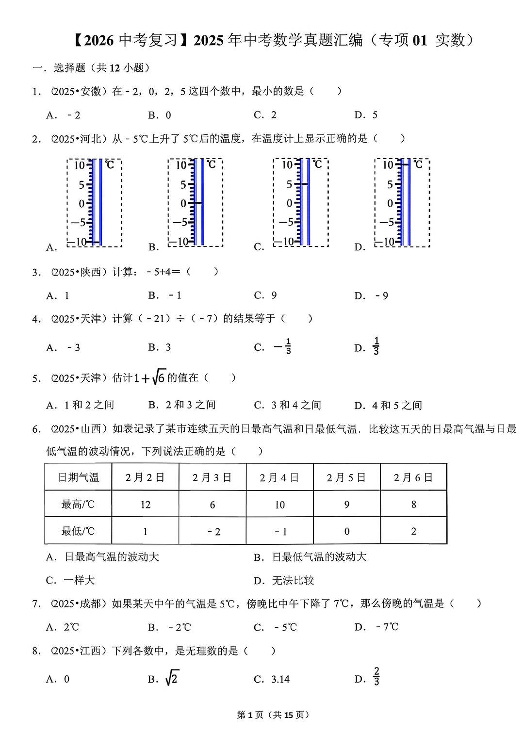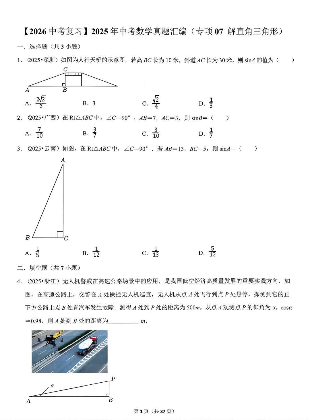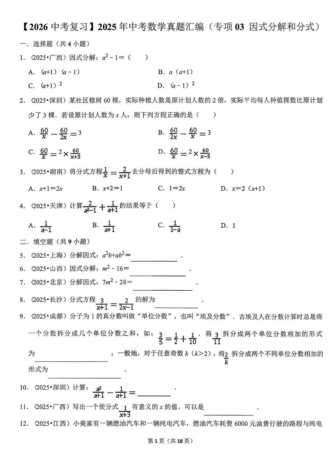 2026 中考数学专用的 2025 年全国中考真题专项汇编,覆盖代数 + 几何两大核心模块,包含:代数专项:实数、代数式和整式、因式分解和分式、二次根式几何专项:平行线、三角形、解直角三角形、四边形全套精选全国各省市最新中考原题,按知识点分类排版,题型含选择、填空、解答,题源新、考点准、专项全,是初三一轮复习、基础巩固、查漏补缺、真题实战的最强刷题资料!
