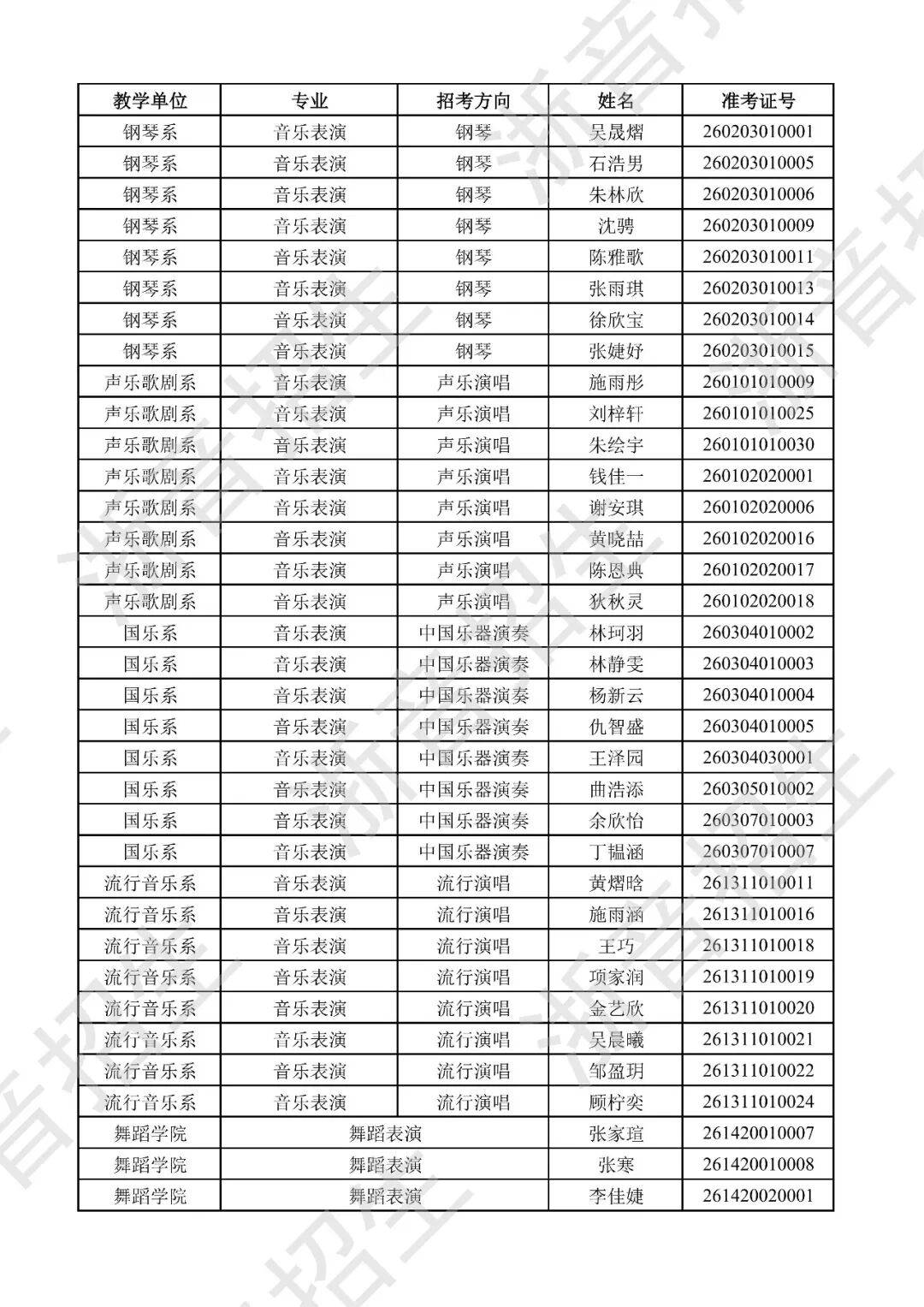 2.浙江音乐学院2026年专升本招生专业加试合格考生名单