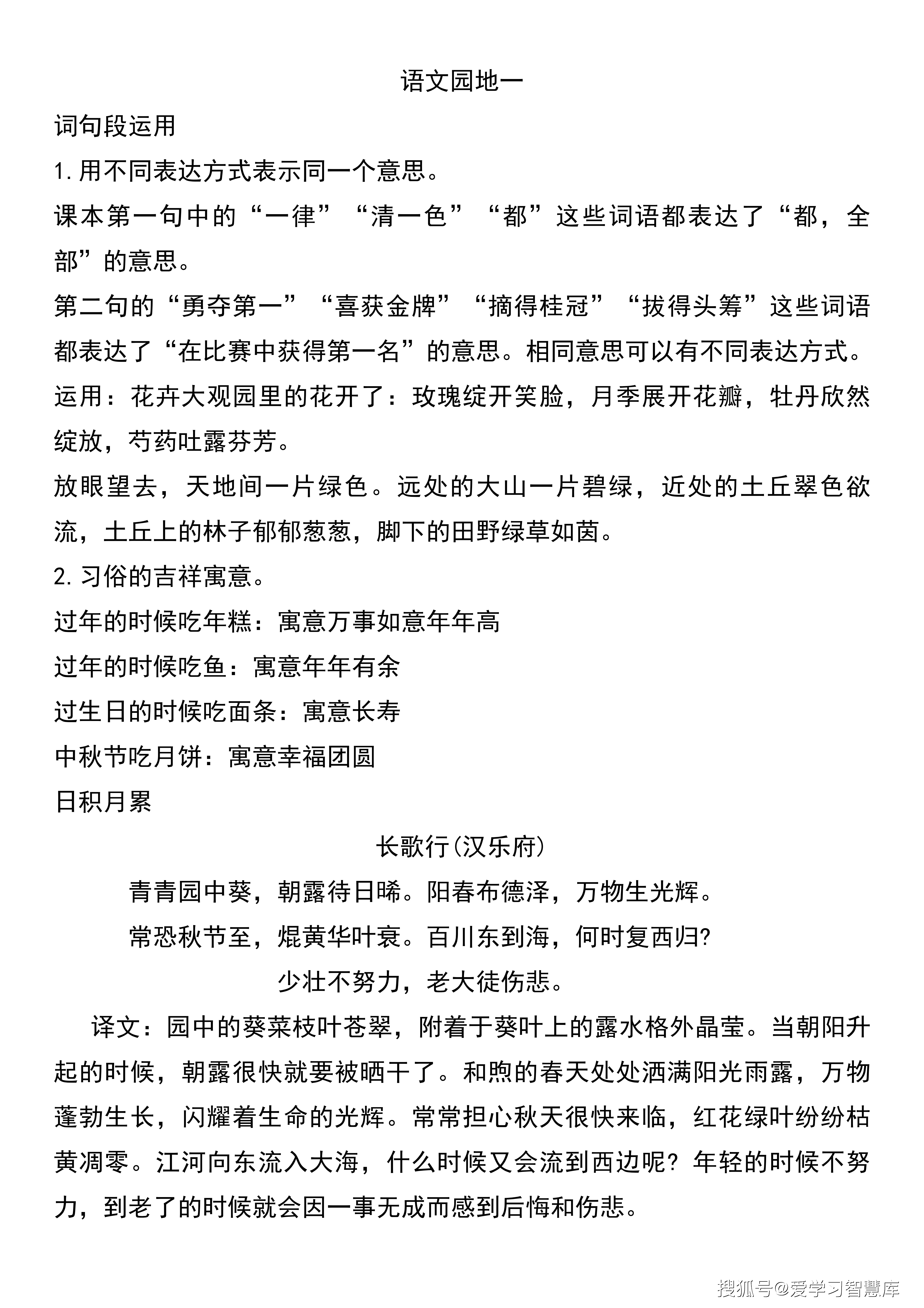 这份资料按单元和课文编排,每课都提炼了核心知识点:从《北京的春节》《腊八粥》中感受传统节日的魅力,到《鲁滨逊漂流记》《汤姆・索亚历险记》里体会人物的精神品质,再到《古诗三首》中理解诗人的情感。同时,“语文园地” 部分还总结了夸张手法、不同表达方式等写作技巧,搭配例句和译文,让你轻松理解和运用。作为开学预习的铺垫,还是课后复习的巩固,都能帮助你扎实掌握课内核心知识,为六年级下册语文学习筑牢根基。