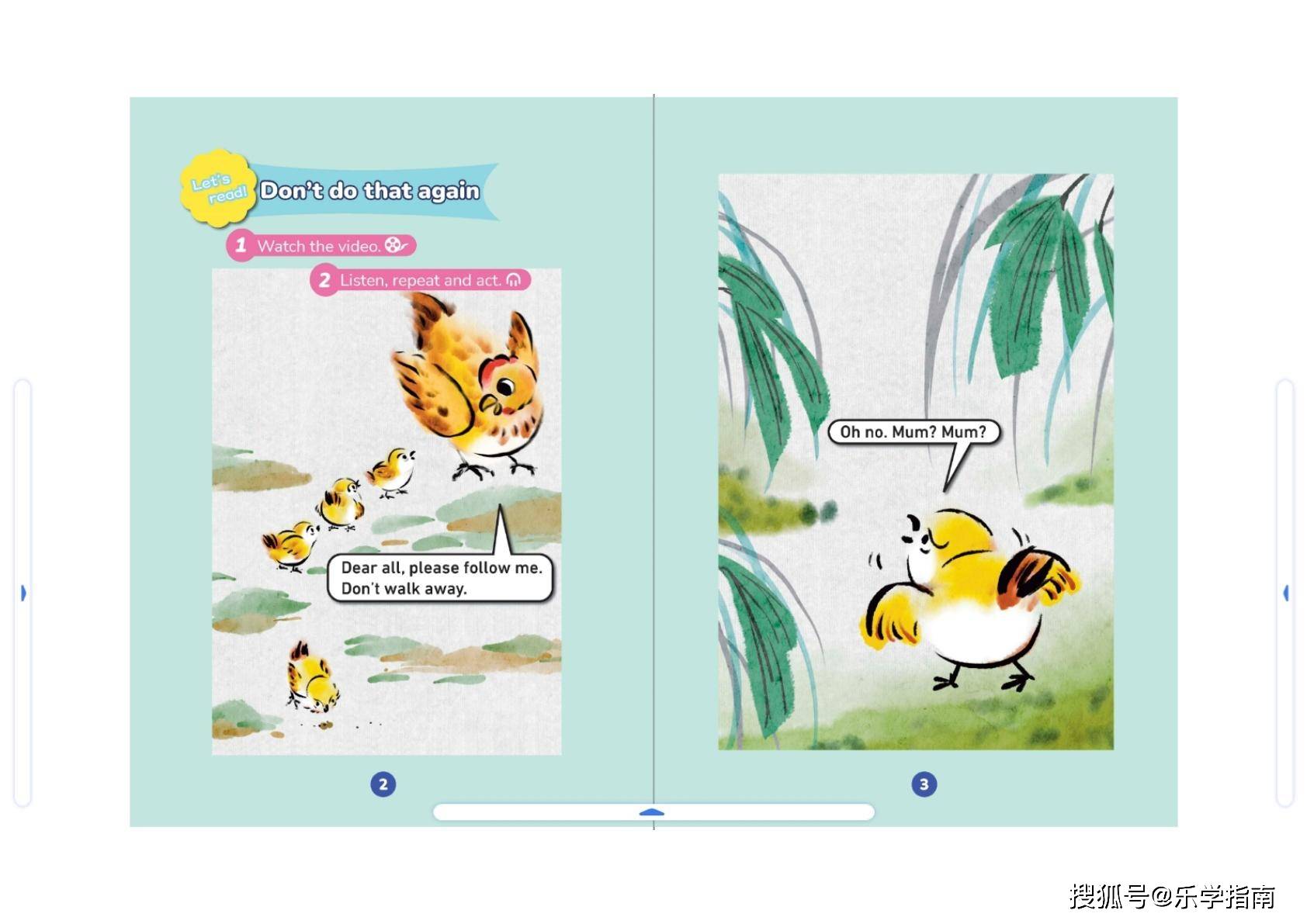 在学习设计上,教材采用了 “情境化 + 多模态” 的教学模式,极具趣味性和互动性。例如,Unit 1 通过《Don’t do that again》的绘本故事,以水墨画风的小鸡 Jack 为主角,用生动的画面和简单的对话,串联起 happy、sad、hungry 等情绪词汇,让学生在理解故事的过程中自然习得语言。同时,教材还融入了 “Let’s chant”“Watch the video”“Listen, repeat and act” 等环节,通过歌谣、视频、听读和表演等多种形式,充分调动学生的感官,让英语学习从被动记忆转变为主动参与。