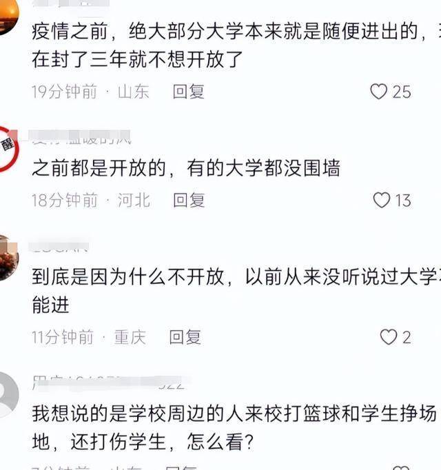 现在好多大学生,都特别怀念疫情前没有严门禁的日子。那时候的校园根本不封闭,校外的人能进来散步、看书,我们也能随时出去,校园和社会从来都不是割裂的,更没有现在这样泾渭分明的隔阂感。