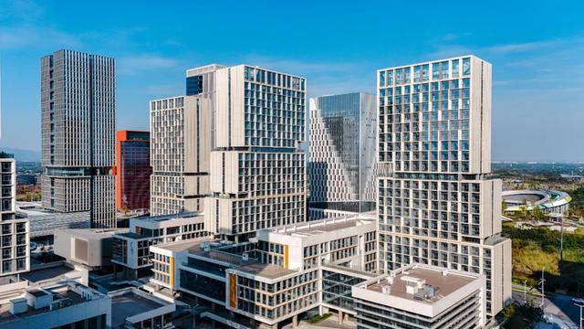 校区摒弃了“一功能一栋楼”的传统模式,将教学、科研、办公、图书等多重功能集约布置于垂直综合体内,形成“向上生长”的建筑集群。以校区最高建筑为例,这栋高147.2米的主楼,分为地下2层和地上32层,其内部立体分布着图书馆、行政办公、科研实验室、报告厅及对外交流空间等多个功能区,是名副其实的“立体校园”。