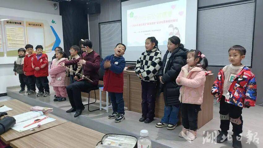 2月5日下午,自强宣讲进万达社区寒假托管班音乐辅导课在万达华府B区党群服务站举办。全国自强模范、黄石港区盲协主席汪钱为托管班孩子们带来一堂趣味十足的音乐课堂。