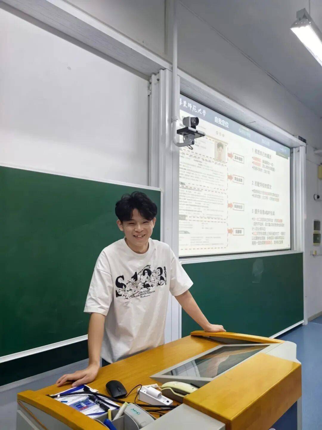 张智鸿认为,想成为一名优秀的教师,知识掌握情况和表达能力是很重要的两个考察要素。因此,在科研学习中,他很注重地理知识的拓展与自身交流表达能力的锻炼。在科研之余,他不仅补充学习了教育学的相关知识,还坚持进行无生模课,沿着职业规划步步迈进。