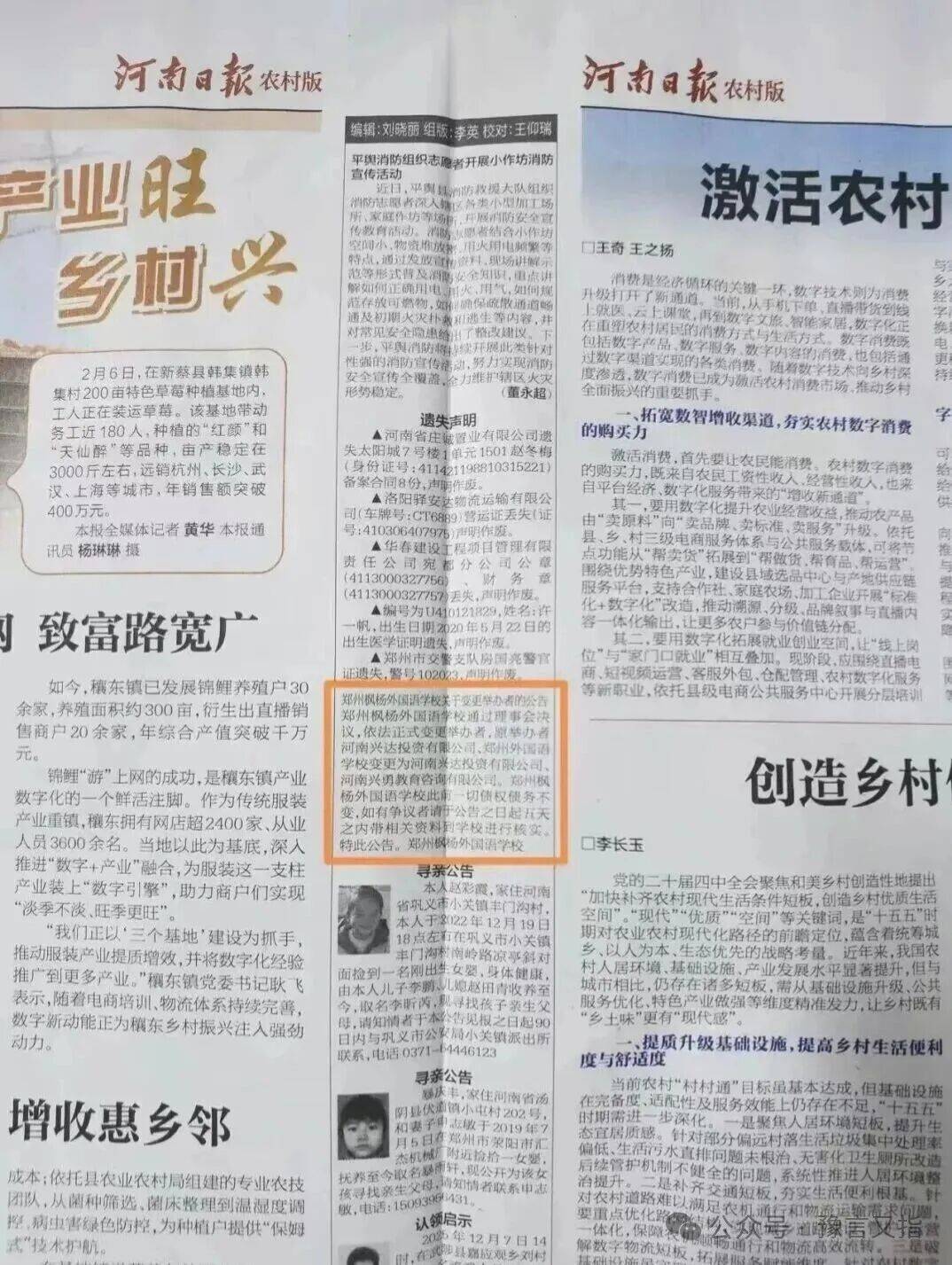 近期,郑州枫杨外国语学校通过理事会决议,依法变更举办者,将原举办者中的郑州外国语学校,替换为