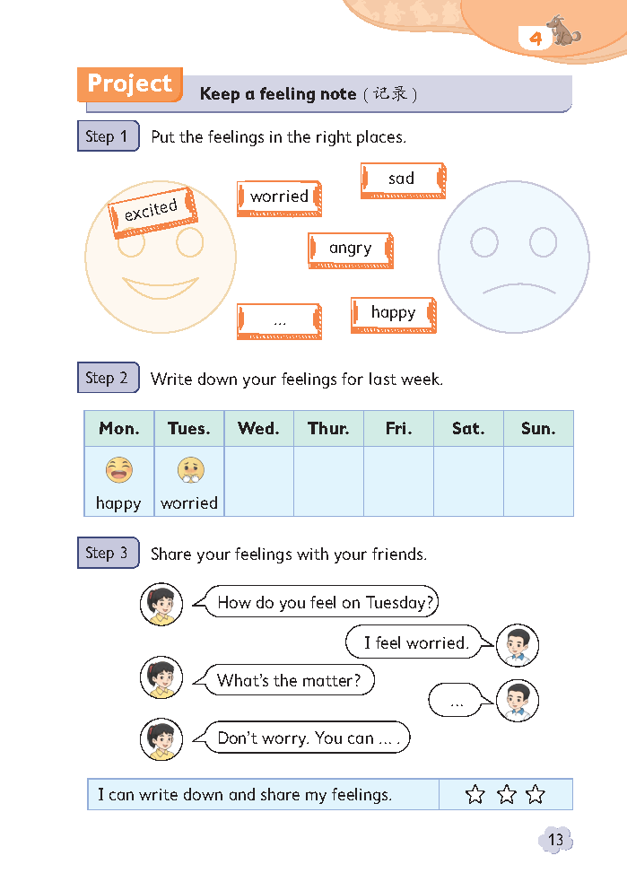 2026秋北京版四年级英语上册第一单元核心主题为“Share and care/Why are you so happy?”(分享与关心/你为什么这么开心),是本册重点情感交际单元,承接三年级英语基础,延续北京版“贴合本地学情、侧重交际应用、兼顾语音语法”的特色,以日常情感表达、关心他人、分享快乐为核心场景,侧重培养孩子的词汇积累、句型运用、语音感知及语境表达能力,难度贴合中年级进阶节奏,是衔接低年级启蒙与高年级综合运用的关键模块,适合课前跟读、课后巩固和家长辅导,同时兼顾情感教育,引导孩子学会分享与关心他人。本单元知识点围绕“核心词汇、核心句型、语音启蒙及易错点规避”四大核心展开,重点突出、贴合实用,精准对接单元教学重点。核心知识点如下:一是核心词汇,按情感与交际场景分类整理,便于孩子记忆、认读与拼写,涵盖情感类(happy 高兴的、sad 难过的、angry 生气的、worried 担心的、excited 兴奋的)、动作与交际类(feel 感觉、help 帮助、find 找到、share 分享、care 关心、together 一起、look for 寻找、help each other 互相帮助)及基础词汇(matter 问题、calm 冷静、down 向下、better 更好、idea 主意),重点掌握单词的正确发音、拼写及固定搭配,比如share feelings 分享感受、be worried 担心、calm down 冷静下来,规避worried、together等单词的发音混淆和拼写错误。二是核心句型,聚焦情感询问、问题询问及建议表达,核心包括询问他人感受“How do you feel today?(你今天感觉怎么样?)”及回答“I feel happy/sad/angry.(我感到高兴/难过/生气。)”;询问他人遇到的问题“What's the matter?(怎么了?)”及应答“I can't find my.../I'm sad.(我找不到我的……/我很伤心。)”;提出建议的句型“Let's take a walk/look for it together.(我们去散步吧/一起找它吧。)”,以及表达感觉好转“I feel better.(我感觉好多了。)”,能灵活运用这些句型完成情景对话和角色扮演,贴合校园、家庭的真实交际场景。三是语音启蒙,本单元重点感知字母a_e、e、e_e在单词中的发音规则,a_e发/eɪ/音(如wake、cake、grape),e发/iː/音(如me、she、he),e_e发/iː/音(如Chinese、these),同时掌握特殊疑问句的降调读法,结合趣味儿歌、句型跟读强化发音记忆,为后续单词认读和拼写打下基础。四是高频易错点,重点规避:情感形容词的拼写错误(如worried漏写r、angry漏写g);句型问答不规范,如混淆“How do you feel?”与“What's the matter?”的用法;语音部分字母发音混淆,尤其是a_e与e的发音差异;Let's开头的祈使句误用动词过去式,同时注意单词首字母大写、句子标点规范的规则。