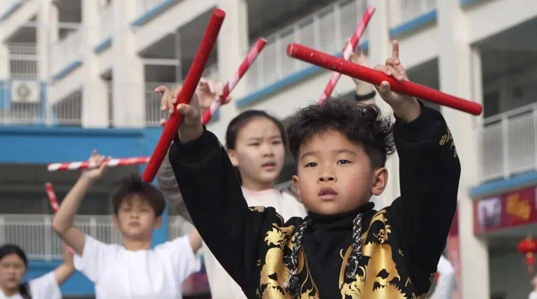 鼓点激越,锣声铿锵。寒假已至,广东省揭阳市普宁市南山小学的校园里仍热闹非凡,清脆有力的英歌槌敲击声此起彼伏。二年级学生陈楷铭正和南山小学少年英歌队的队员们一道,在国家级非物质文化遗产项目英歌(普宁英歌)代表性传承人陈来发的指导下练习英歌舞。只见操场上的少年们脚步起伏腾挪、动作刚劲有力,英歌槌在指间飞速旋转,汗珠顺着脸颊滑落。
