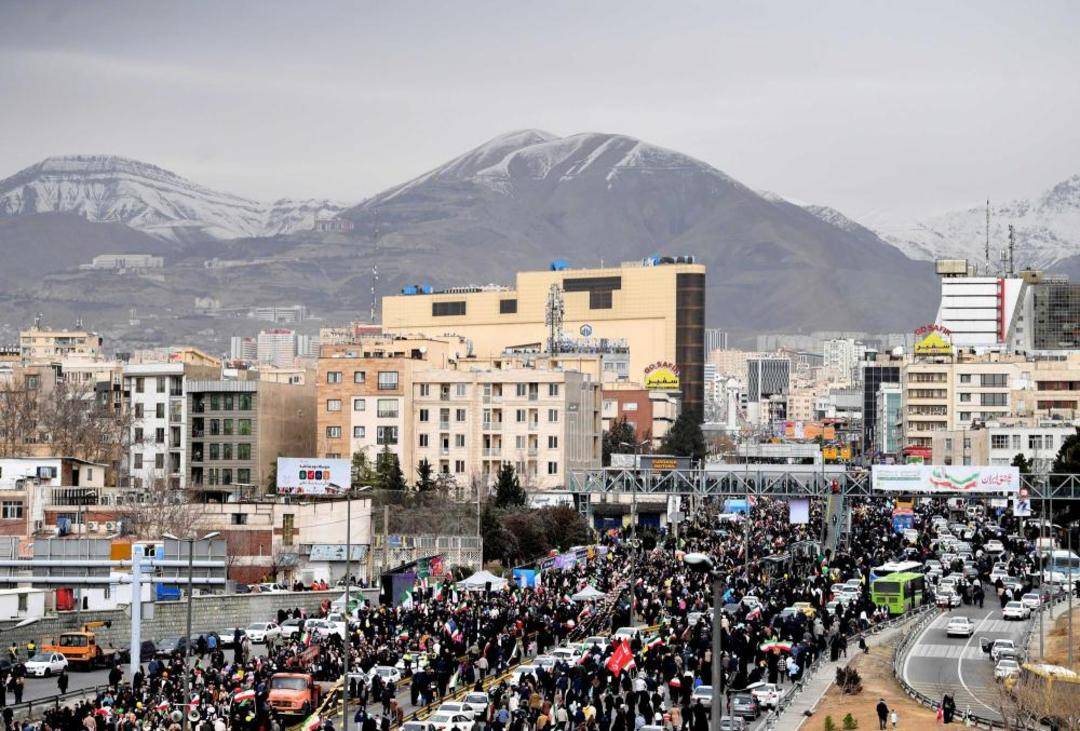 2月11日,在伊朗首都德黑兰,民众参加纪念伊朗伊斯兰革命胜利47周年集会。新华社记者沙达提摄