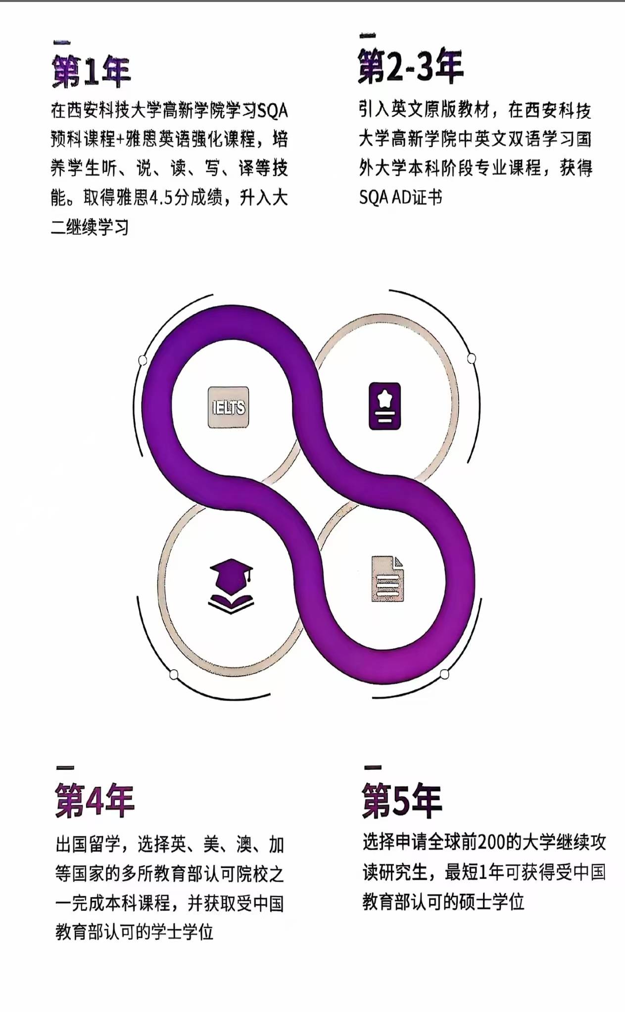 * 优势: 前三年在高新学院就读,学费远低于直接出国,家庭经济压力小。完成学业后,直接获得英国高校的学士学位,回国还能进行学历认证。特别适合想以较低成本获得英联邦国家学位的同学。